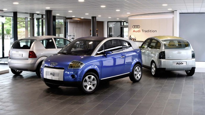 Im weiteren Verlauf der Arbeiten entstehen zwei Studien: Die eine steht 1997 als Showcar auf der IAA in Frankfurt und trägt neben der vorläufigen Modellbezeichnung Al2 wegen seiner Farbe den Beinamen "Light Green". Nur wenig später ist "Light Blue" auf der Tokyo Motor Show zu sehen, eine dreitürige Variante des Al2 mit variabler Ladefläche und Rolldach. Ihr Name: Audi Al2 open end.