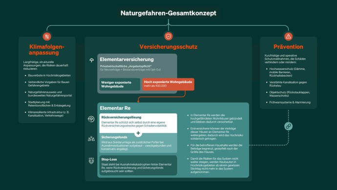 Mit dem Modell Elementar Re legen die Versicherer nun erstmals einen Vorschlag vor, wie ein Sicherungssystem für Deutschland ausgestaltet sein könnte. Der Vorschlag versteht sich laut Asmussen "als fachlicher Impuls zur politischen und gesellschaftlichen Diskussion".
