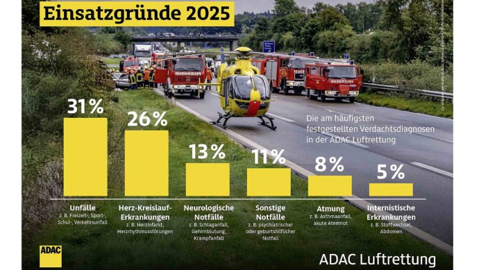 Um die notfallmedizinische Versorgung aus der Luft auch in Zukunft uneingeschränkt sicherzustellen, müsse die vom Bundesgesundheitsministerium aktuell vorangetriebene Reform der Notfallversorgung jetzt umgesetzt werden, sagte Frédéric Bruder, Geschäftsführer der ADAC Luftrettung bei der Vorstellung der Jahresbilanz 2025. "Der Rettungsdienst muss weiterentwickelt werden. Wir brauchen dringend längere Einsatzmöglichkeiten auch in der Dunkelheit, flexiblere Arbeitszeitmodelle, eine flächendeckende digitale Vernetzung der Leitstellen und eine länderübergreifende Einsatz- und Bedarfsplanung mit einheitlichen Qualitätsstandards", erklärte er.