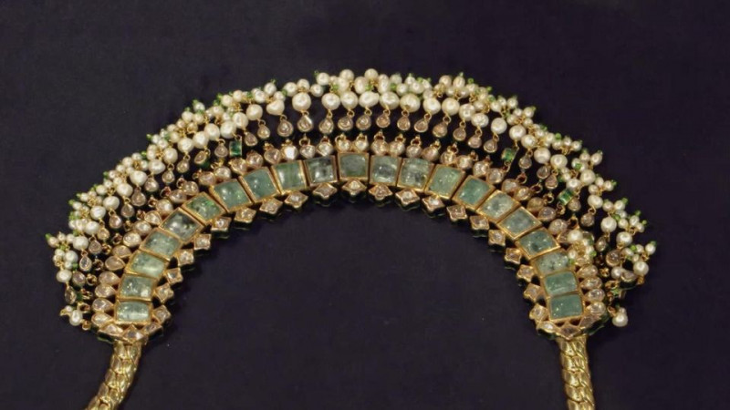 Experte Patrick Lessmann bestätigt die indische Herkunft, "zumindest was das untere Teil angeht". Die obere Hälfte sei eine ovale Panzerkette in 750er-Gelbgold von der Firma Kast, die später hinzugefügt wurde. Bei dem Haupt-Stück handele es sich aber um Kundan-Schmuck. Es handelt sich dabei um eine traditionelle indische Schmucktechnik, bei der Edelsteine mit einer Blattgoldfolie eingefasst werden. Der Begriff bedeutet übersetzt "reines Gold". Hier wurde 22-karätiges Gold verwendet.