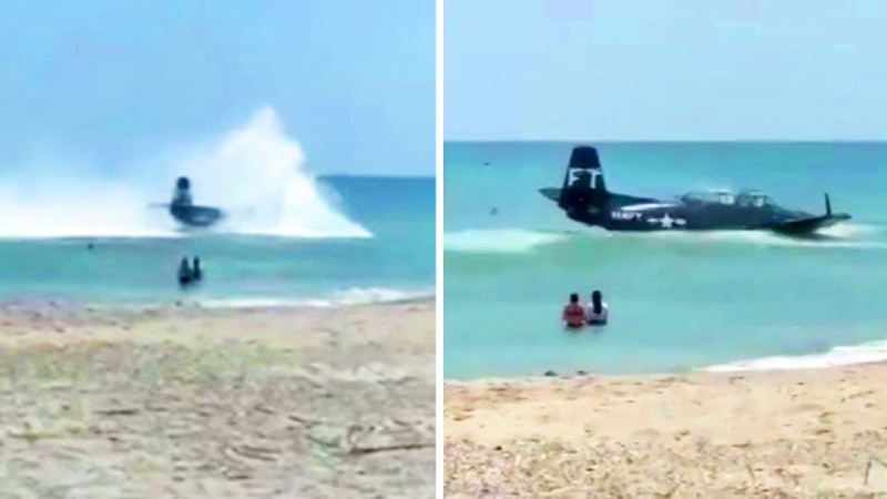 Sehen Sie im Video: Weltkriegsbomber macht in Florida Notlandung direkt vor Badegästen.