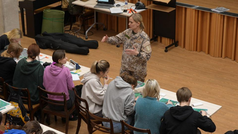 Bei dem Training arbeiten die Schulen mit einer militärischen Jugendorganisation zusammen. Der Unterricht ist Teil des lettischen Verteidigungskonzepts angesichts der russischen Bedrohung.