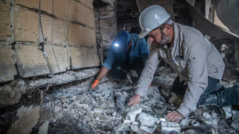 Ihre Arbeit wird in einer Ausstellung in der Antikenbehörde in Jerusalem gezeigt. Ihr Titel: Auferstehung aus der Asche. Direkt nach dem 7. Oktober begannen die Archäologen damit, Schutt und Asche zu durchsieben, auf der Suche nach kleinsten Leichenteilen.