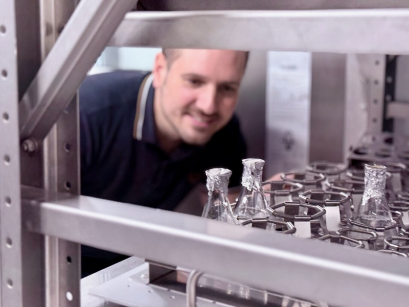 Bei den hochsommerlichen Temperaturen, die an diesem Juni-Tag nicht nur draußen, sondern eben auch hier drinnen herrschen, ist diese Schüttel-Angelegenheit sowas wie eine behagliche Hängematte für Bakterien. Denn die sollen es gut haben und sich dabei brav vermehren.