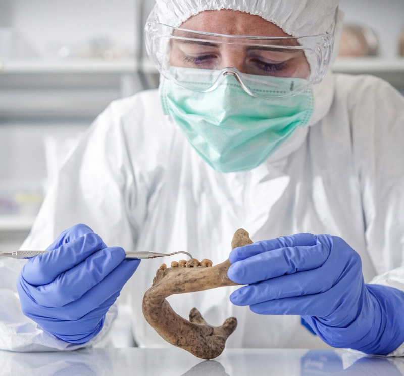 Die Grundidee, an der hier geforscht wird, ist aber eigentlich ganz einfach: Wenn Naturstoffe so toll und wichtig sind, insbesondere für die Medizin, wie viele mögen uns wohl schon abhandengekommen sein, weil die Bakterien, die sie produzieren, längst ausgestorben sind – ausgestorben wie ein Säbelzahntiger oder ein Wollhaarmammut? Eine Frage, die umtriebig und ehrgeizig macht, nach jahrelanger Forschungsarbeit gelang den Forschenden verschiedener Institute und Fachrichtungen 2023 dann der Durchbruch: "Wir haben verschiedene Neandertaler-Zähne erhalten von diversen Ausgrabungen, konnten da den Zahnstein abkratzen und die konservierte DNA aus diesem Zahnstein isolieren." Und nur dort bleibt die DNA der Steinzeitbakterien halbwegs verwertbar erhalten.