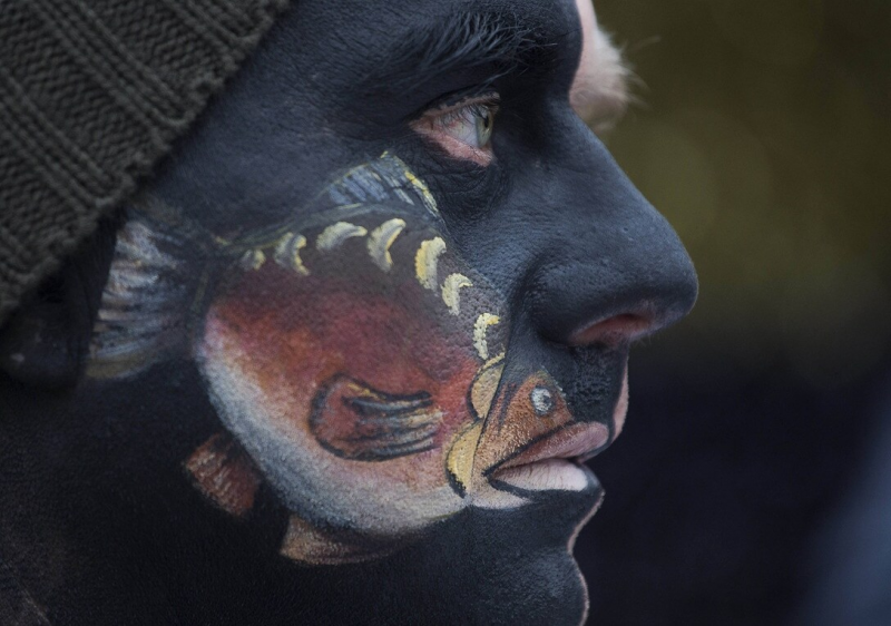 Mit einem aufgemalten Karpfen im Gesicht protestierten Tierschützer in den vergangenen Jahren gegen den Lebendverkauf der Fische – mit Erfolg, denn inzwischen ändert sich allmählich die Einstellung der Polen dazu.Bildrechte: IMAGO / ZUMA PressLebendverkauf auf dem Basar