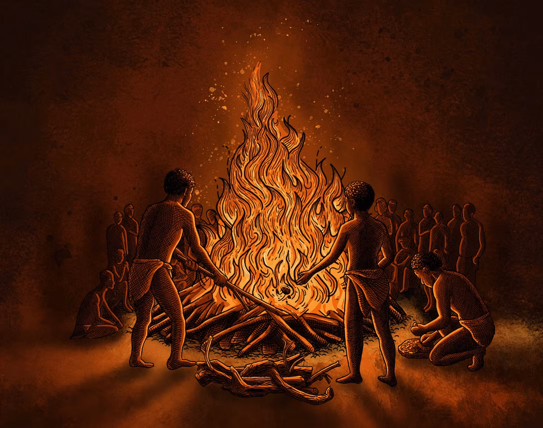Eine Darstellung des Scheiterhaufens am Mount Hora vor 9.500 Jahren.Bildrechte: Patrick FahyAllerdings wurde die Tote nicht im Ganzen eingeäschert. Schnittspuren an mehreren Gliedmaßen-Knochen deuten darauf hin, dass Teile ihres Körpers entfleischt oder sogar komplett entfernt wurden. Zudem fanden die Forscher keinerlei Fragmente von Zähnen oder Schädelknochen im Scheiterhaufen. Sie gehen deshalb davon aus, dass der Kopf der Toten vor dem Verbrennen ebenfalls entfernt wurde. Was für uns heutzutage extrem grausam erscheint, ist nach Ansicht der Forscher ein Hinweis darauf, dass der ganze Fall eher etwas mit Erinnerung, sozialem Gedächtnis und Ahnenverehrung zu tun haben könnte. "Unter alten Jägern und Sammlern in Malawi gibt es immer mehr Belege für Bestattungsrituale, die posthume Entfernung, Pflege und sekundäre Wiederbestattung von Körperteilen umfassen, vielleicht als Symbole", erklärt die Anthropologin Jessica Cerezo-Román von der University of Oklahoma.