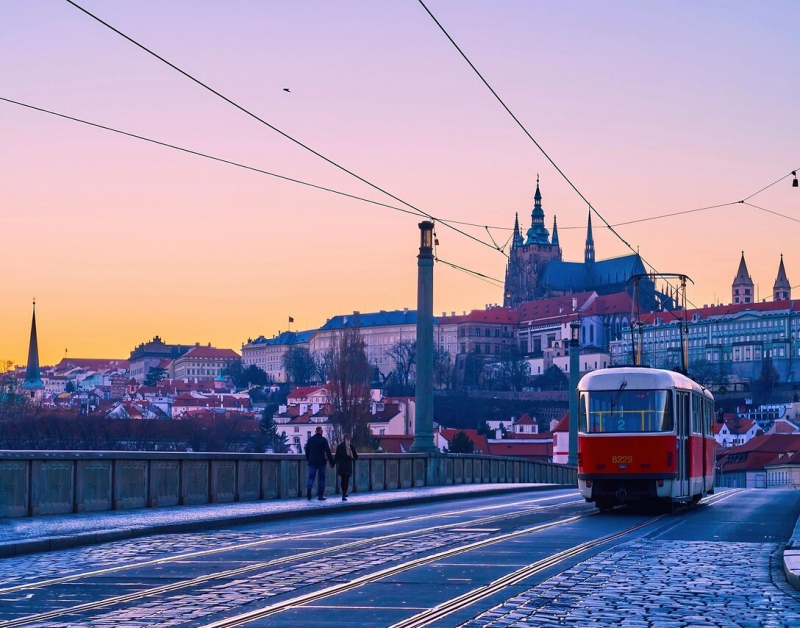 Die Linie 23 ist bei Touristen besonders beliebt – nicht nur, weil sie zur Prager Burg hinauffährt, sondern auch, weil sie weitgehend originalbelassen ist.Bildrechte: MITTELDEUTSCHER RUNDFUNKTouristen bewundern das stylishe Sechziger-Jahre Ambiente, und Prager genießen einen Hauch Vergangenheit auf dem Weg durch die schönsten Ecken der Stadt, hinauf zur Prager Burg. Bei der Fahrt über die Moldau wandert der Blick hinüber zur Karlsbrücke und immer wieder auch zu anderen T3-Bahnen, die entgegenkommen. Denn ob Retro-Linie oder nicht: Die T3 ist in Prag auch nach sechs Jahrzehnten im Dienst keine Museumsbahn, sondern Alltag.