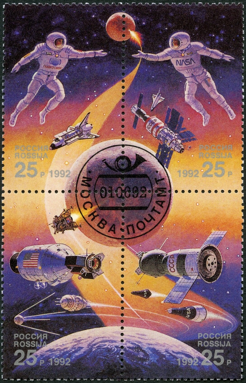 1992 waren die Weichen auf Annäherung und Kooperation gestellt – das belegt auch diese russische Briefmarke, die die Zusammenarbeit von Roskosmos und NASA feiert.Bildrechte: IMAGO / DreamstimeDoch diese Zeiten sind vorbei. Der Abbruch der internationalen Kooperation fiel mit dem Aufstieg von SpaceX zusammen, das alle wichtigen Konkurrenten vom Markt drängte. Seit 2020 transportieren Dragon-Raumschiffe von SpaceX Besatzungen, Fracht und Weltraumtouristen zur ISS – ein Bereich, in dem Russland einst Monopolist war.